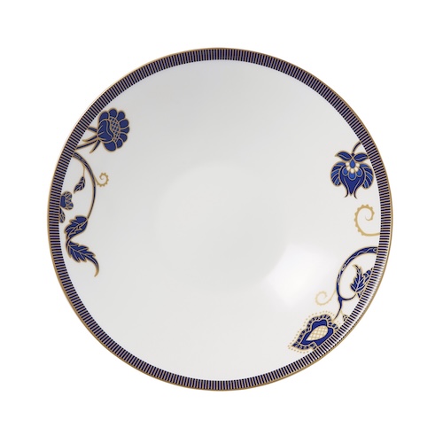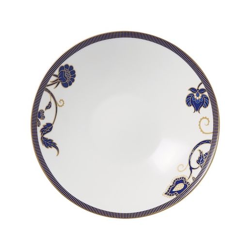 Immerse yourself in the vibrant allure of the William Edwards Makira collection, inspired by Madagascar's breathtaking biodiversity. With intricate illustrations of exotic animals and lush tropical foliage in rich blue tones, accented by shimmering gold mica, each piece exudes playful elegance. Perfect for transforming dining into an extraordinary experience.