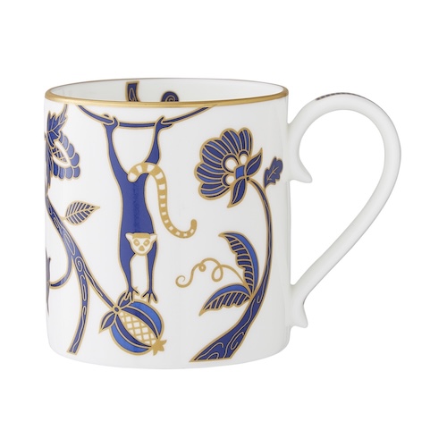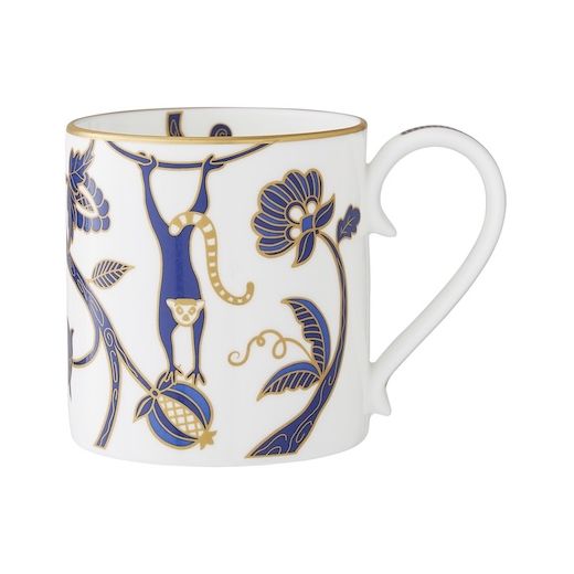 Immerse yourself in the vibrant allure of the William Edwards Makira collection, inspired by Madagascar's breathtaking biodiversity. With intricate illustrations of exotic animals and lush tropical foliage in rich blue tones, accented by shimmering gold mica, each piece exudes playful elegance. Perfect for transforming dining into an extraordinary experience.