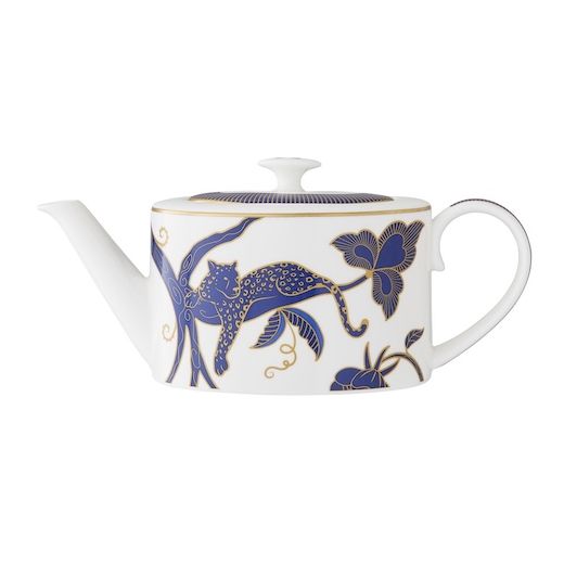 Immerse yourself in the vibrant allure of the William Edwards Makira collection, inspired by Madagascar's breathtaking biodiversity. With intricate illustrations of exotic animals and lush tropical foliage in rich blue tones, accented by shimmering gold mica, each piece exudes playful elegance. Perfect for transforming dining into an extraordinary experience.